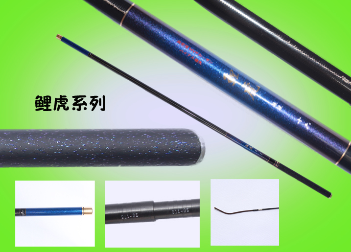 竿子竿胚采用高强度、高密度、高韧性日本进口40T的碳布,针对难度较大的鲤鱼研发而成,采用特殊工艺精心制作而成,竿子硬、挺的同时竿体强度和韧性超好,腰力极佳,手感极佳;