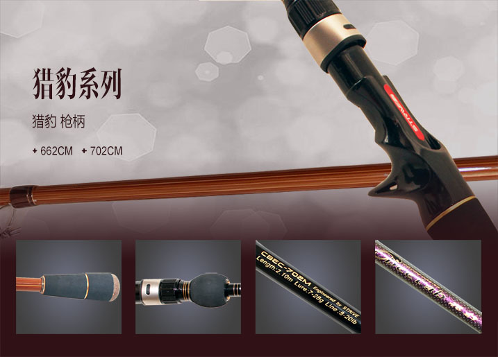 ◎把手采用高密度、高硬度黑色EVA把手,增加了钓竿自身握竿的舒适性;
